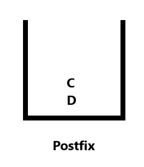 Step 1:We start iterating from the end of the string (length – 1 = 7 – 1 = 6 ) to start index. Ati=6, we have char = ‘D’, an operand so we push it into the Postfix Stack. Ati=5, we have char = ‘C’, we push it into the stack. The Postfix stack now is: